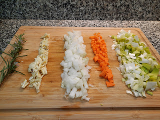 Cortamos la verdura a trocitos y doramos en la misma olla.