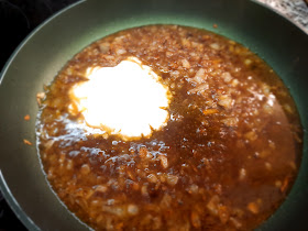 Ponemos el caldo y la nata. Añadimos la carne a la sartén.